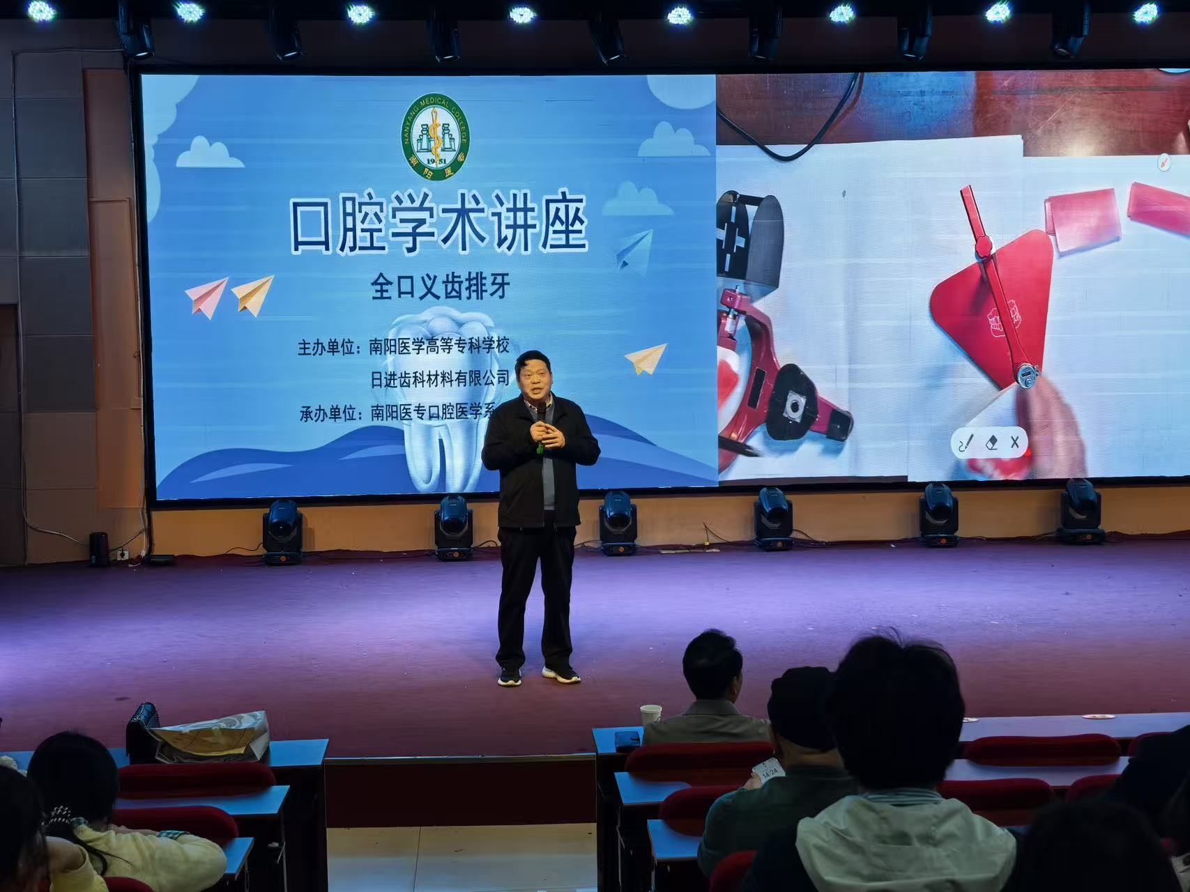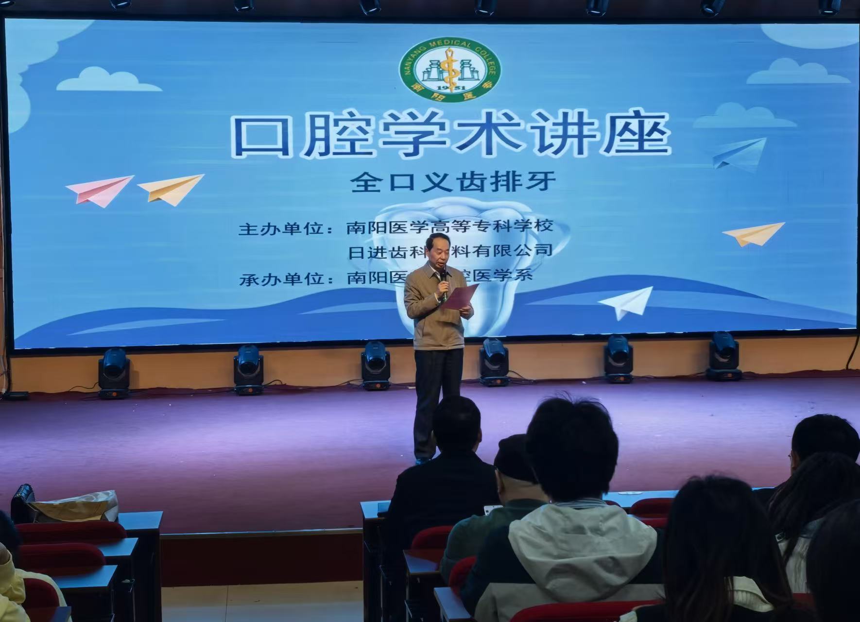为深化口腔医学专业内涵建设,提升师生全口义齿排牙技术水平,2026年4月1日下午,口腔医学系在仲景东区报告厅成功举办全口义齿排牙学术讲座。本次讲座特邀全国口腔修复工艺领域资深专家赵军教授主讲,校党委委员、副校长刘荣志出席并致欢迎辞,讲座由口腔医学系主任王照林主持。