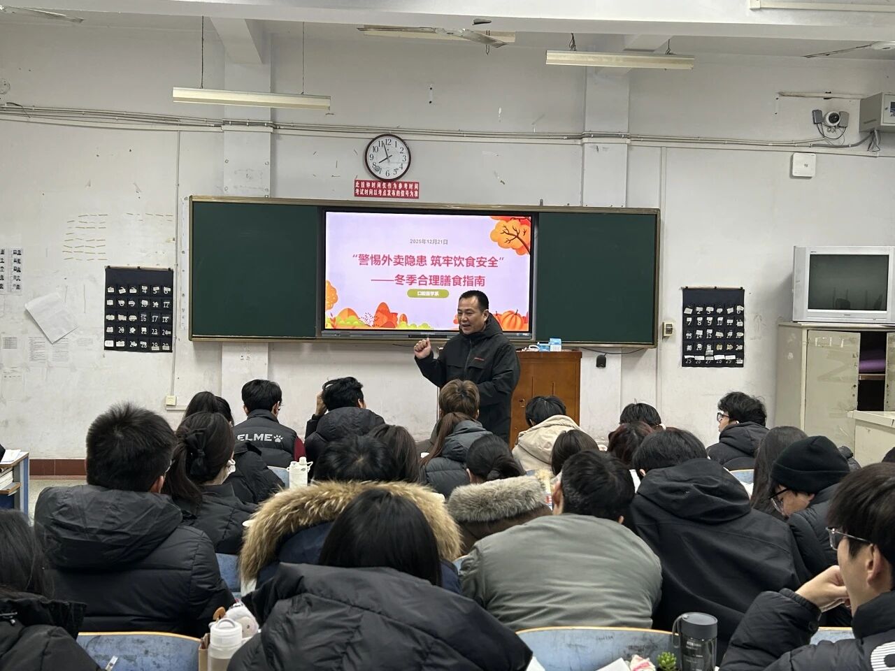 为帮助学生塑造健康的生活习惯,提升学生饮食安全,我系于12月21日晚围绕“警惕外卖隐患 筑牢饮食安全”主题召开班会,班会聚焦于同学们日常的饮食选择,深入探讨了外卖存在的安全隐患,分享了科学的冬季饮食指南,共同发出了“减少外卖,走进食堂”的积极倡议。