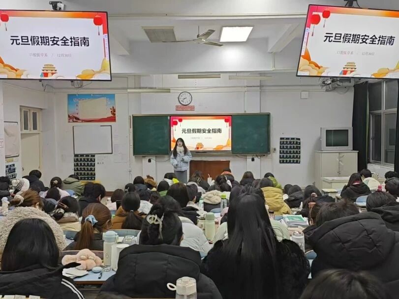 班会上,辅导员们结合元旦假期特点,从多方面开展安全教育:提醒学生出行遵守交通规则,不乘坐无牌无证、超载车辆,雨雪天气注意路面湿滑;外出游玩要提前告知家长行程,不去未开发景区、偏僻水域等危险区域。