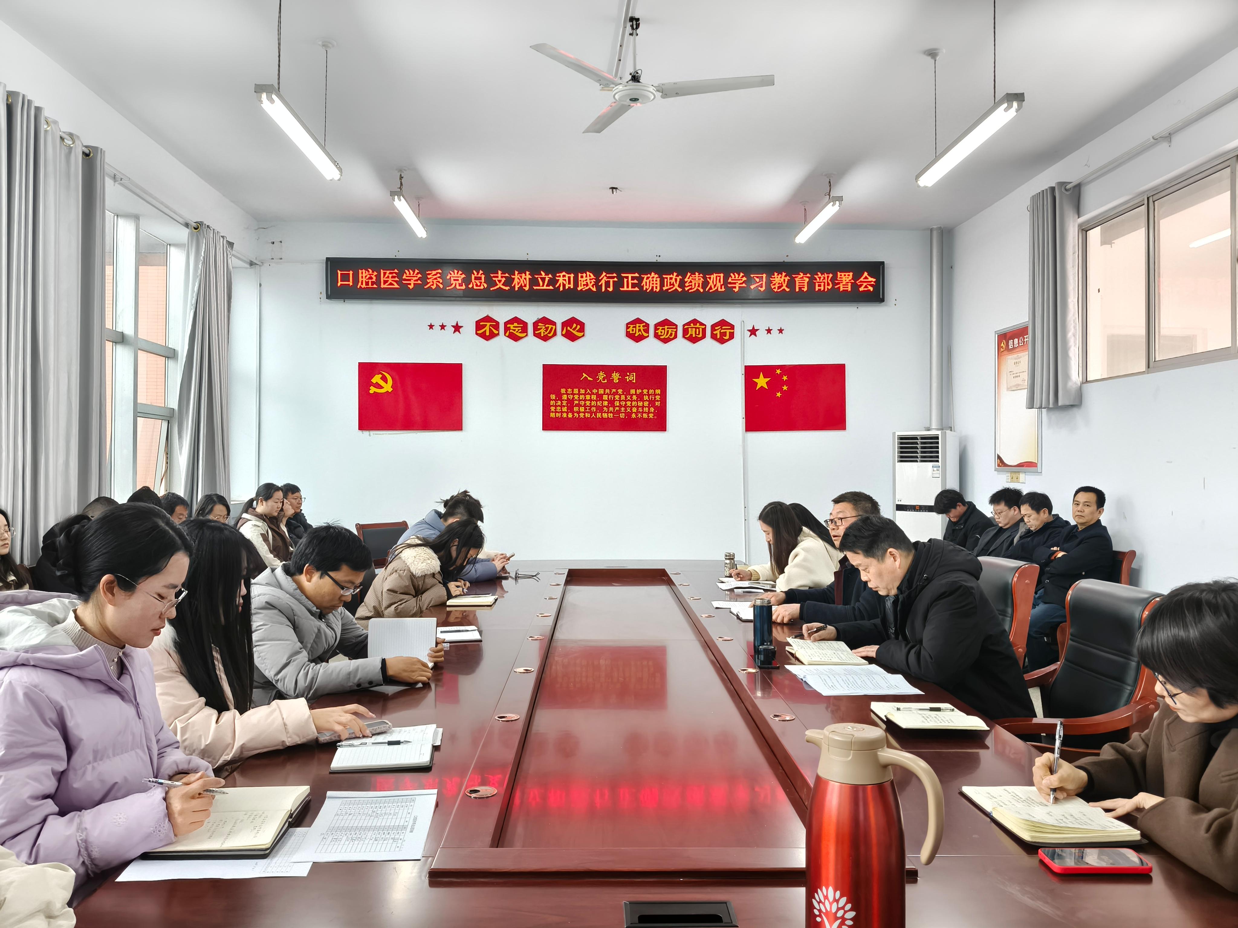 3月4日下午,口腔医学系党总支在1号教学楼318会议室召开全体党员大会,部署树立和践行正确政绩观学习教育工作。